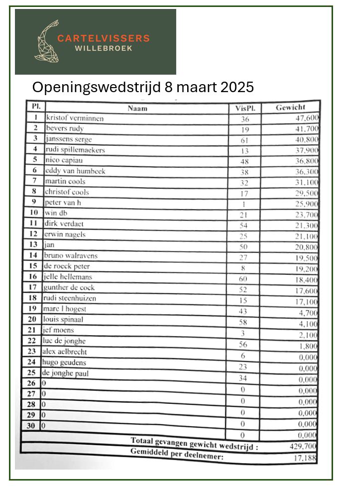 Openingswedstrijd seizoen 2025 - 8 maart, enkel